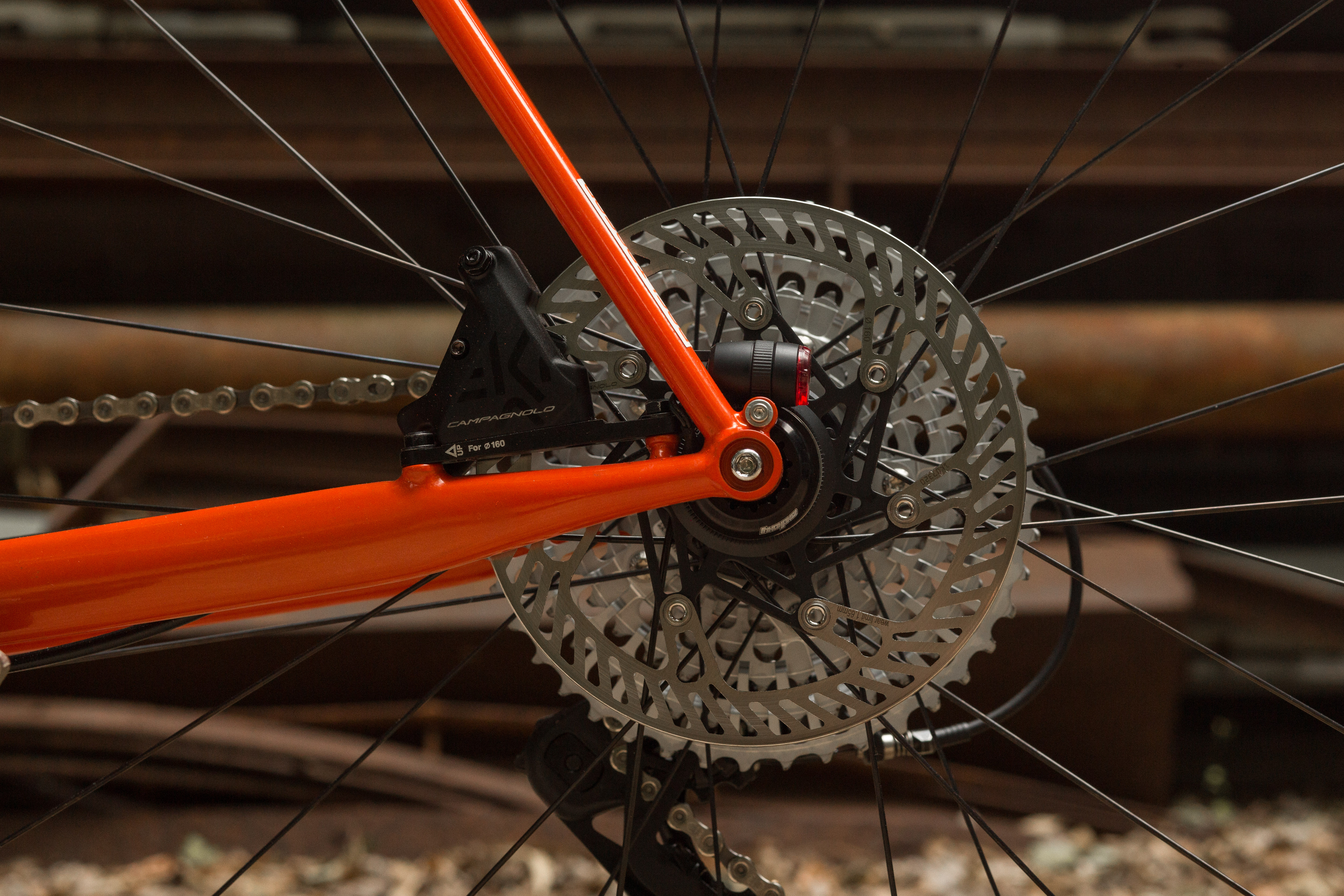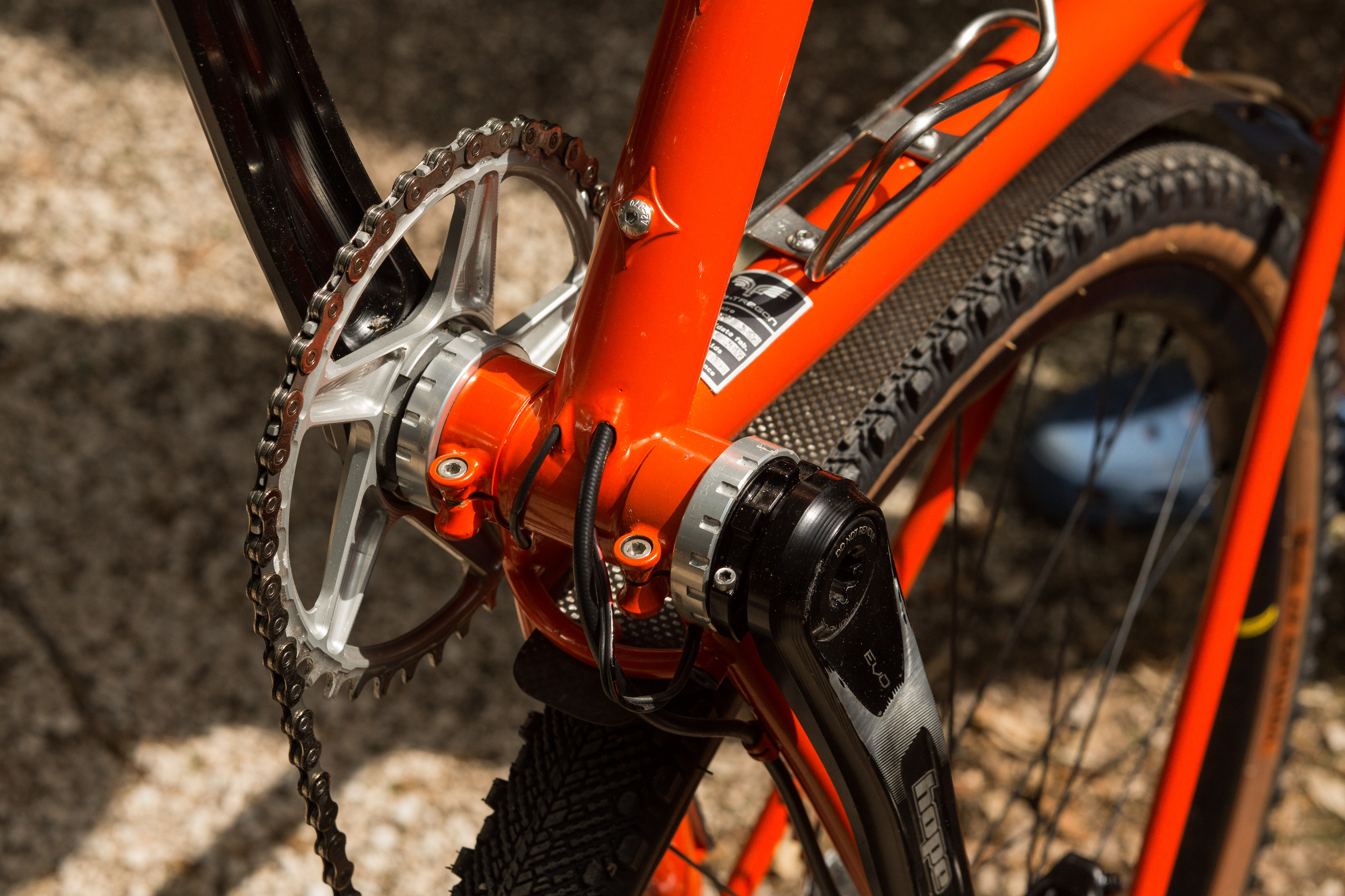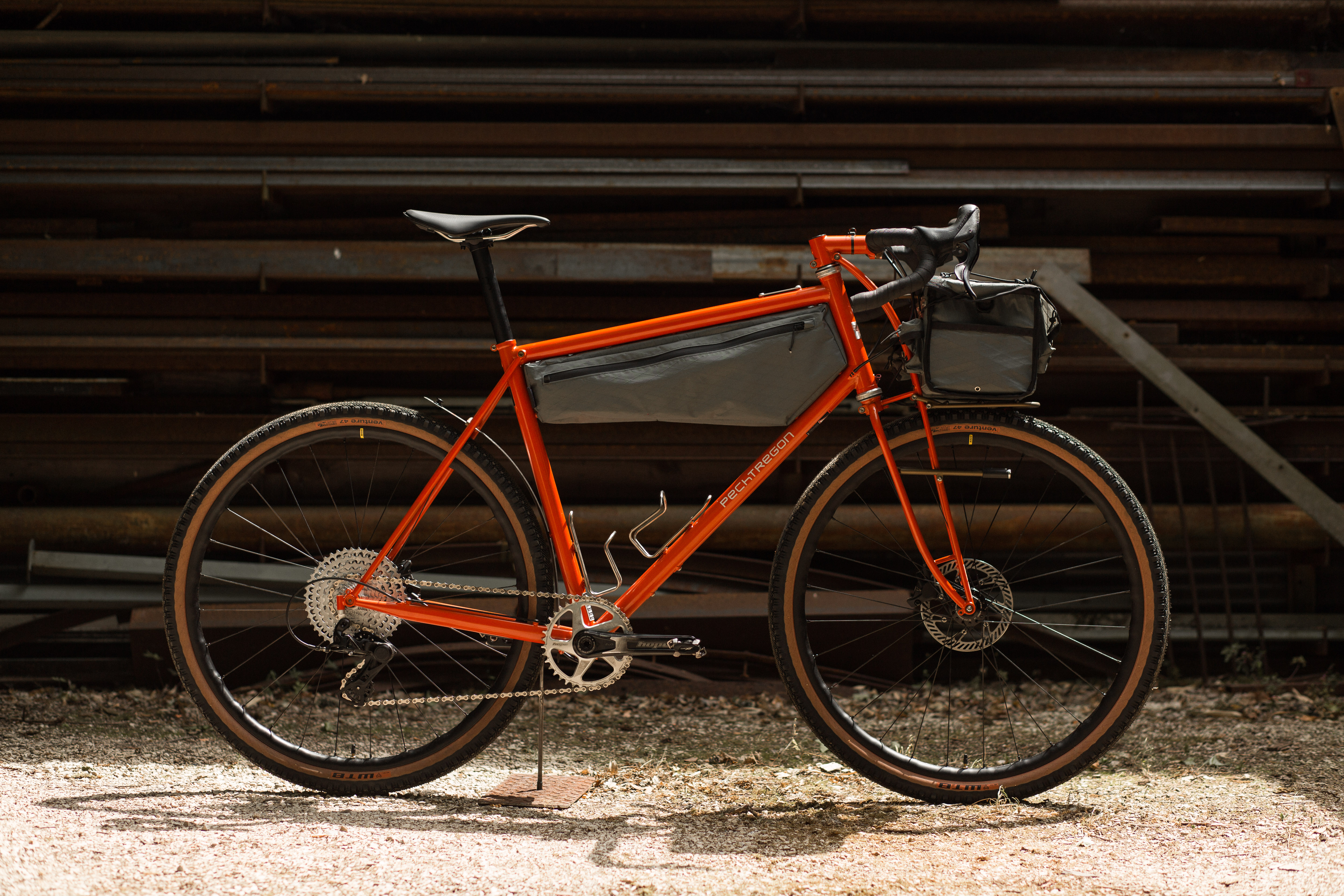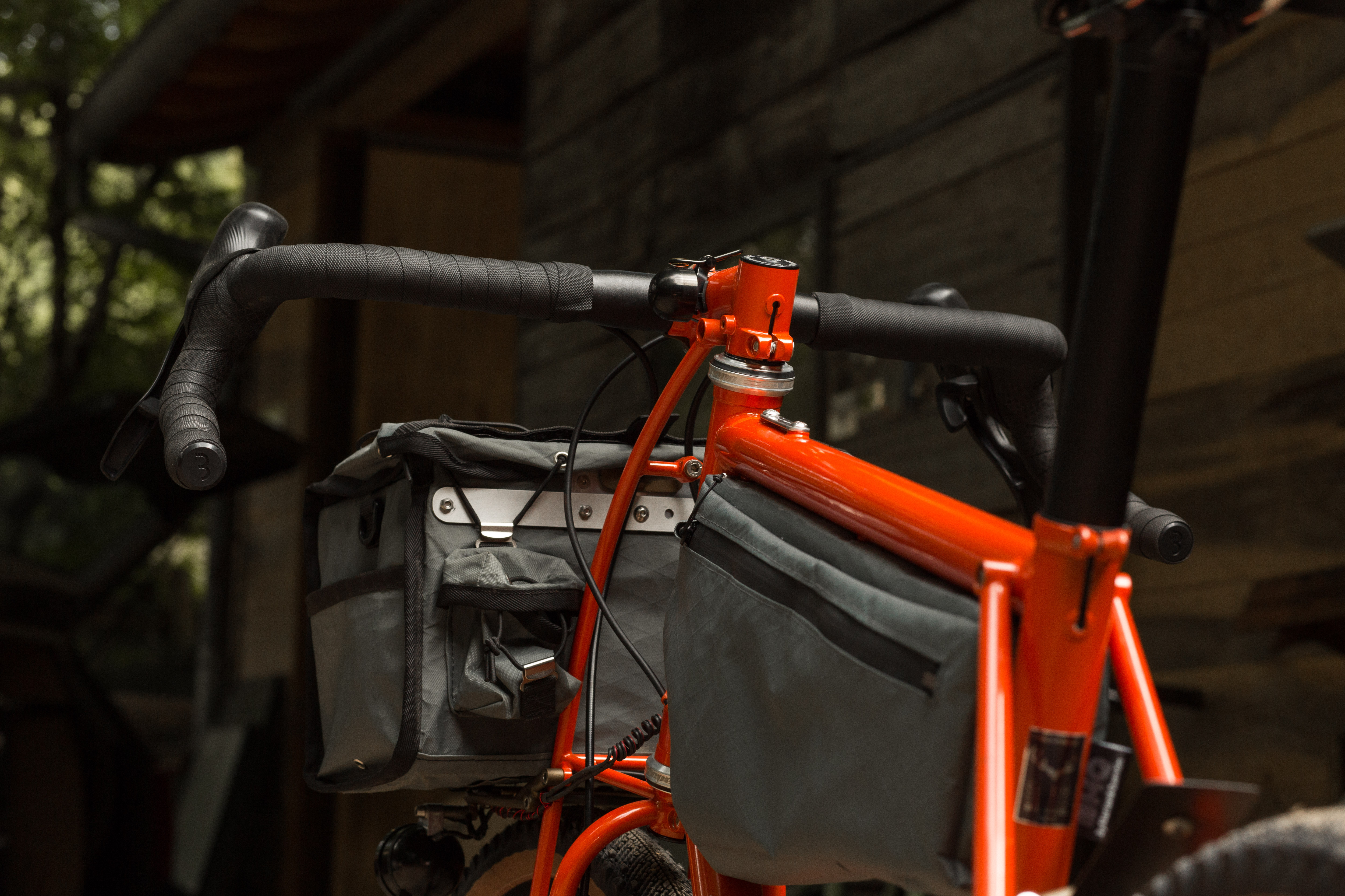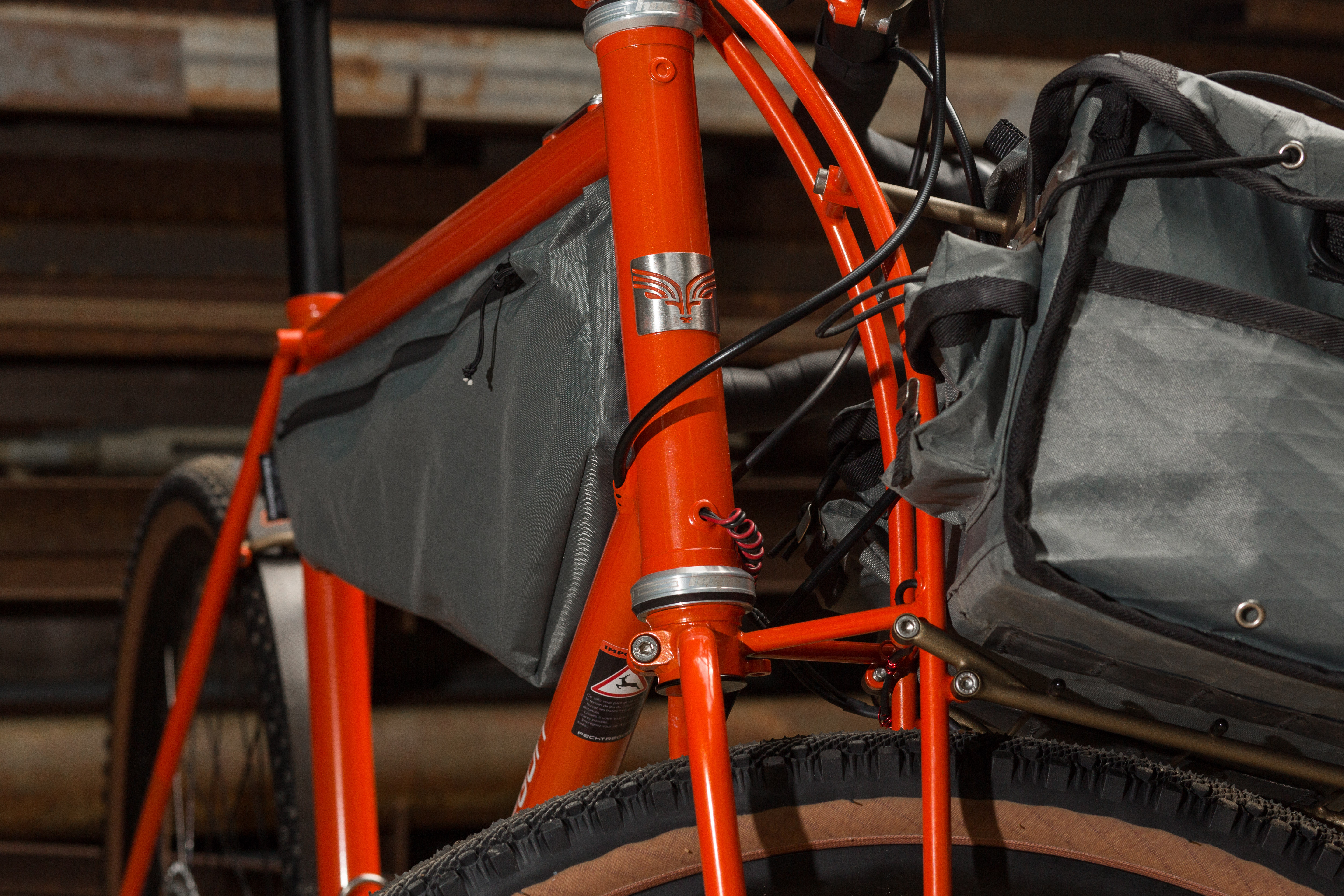 Esra V.2 répond en tout point au cahier des charges du Concours de Machines 2017 à Ambert, qu'il a d'ailleurs remporté. C'est un GravelTour vif, pliable, constamment amélioré depuis sa première mouture lors du Concours. Désormais revêtu d'une magnifique robe orangée pailletée de fines particules dorées et de composants haut de gamme, ce vélo emblématique des productions PechTregon a intégralement été remis à neuf : il est désormais mis à la vente pour continuer son parcours dans d'autres mains.