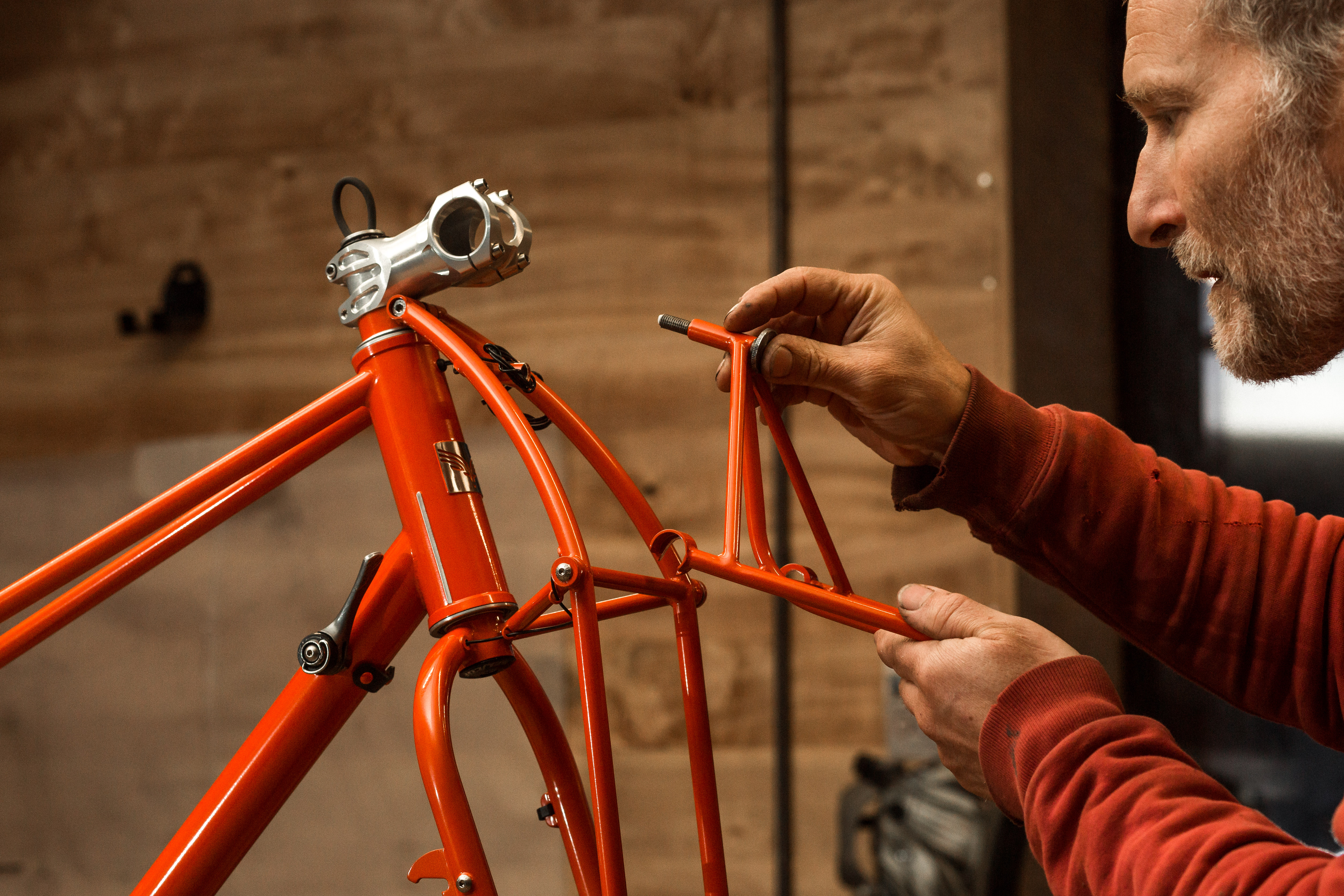 Fred vit pour le vélo, trace à longueur de journée des parcours de vélo, est rêve le reste du temps de vélos artisanaux. Il stocke dans sa cave un vélo La Fraise, une Vagabonde et désormais son PechTregon N°046. Un Mountain Bike d'aventure, joueur grâce à sa géométrie Zéro déport, robuste avec son cadre périmétrique et sa TrussFork. C'est avec lui qu'il reconnait désormais les parcours de la SeaToPeak et de la GravelTroBreizh dont il est l'unique chef d'orchestre et organisateur.